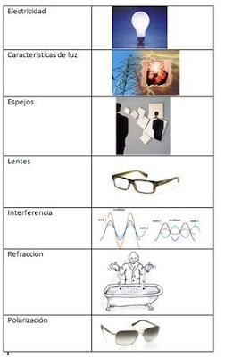Espejos: Es una superficie pulida en la que al incidir la luz, se refleja siguiendo la leyes de la reflexion.